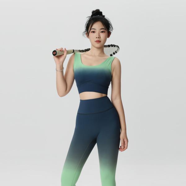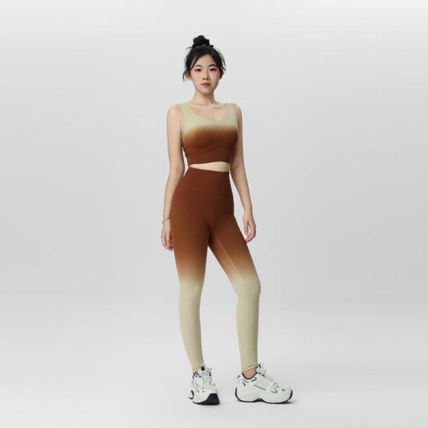 High Waist Gradient Nylon Yoga Pants Soft Casual Lounge Trousers with Custom Logo 2pcs Comfortable Women's Yoga Leggings Set